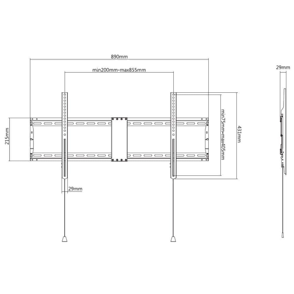 Nosilec je primeren za ukrivljene zaslone in omogoča prilagoditev za različne VESA standarde, ki segajo od 200 × 200 mm do maksimalnih 800 × 400 mm. Priklopite lahko en zaslon in uživajte v optimalnem gledanju. Razdalja do stene je minimalna in največja 2.9 cm, kar omogoča eleganten in prostoren videz.