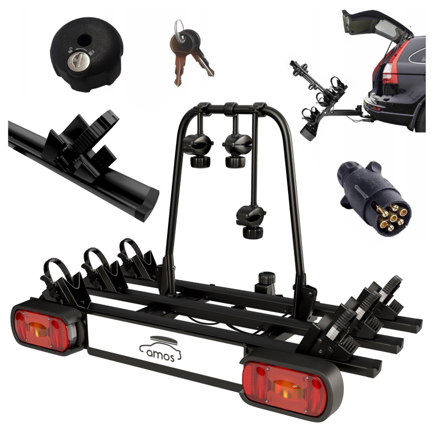 AMOS GIRO 3 platforma za kolo, ki se pritrdi na vlečno kljuko, za 3 kolesa, 7-PINČNA, ČRNA