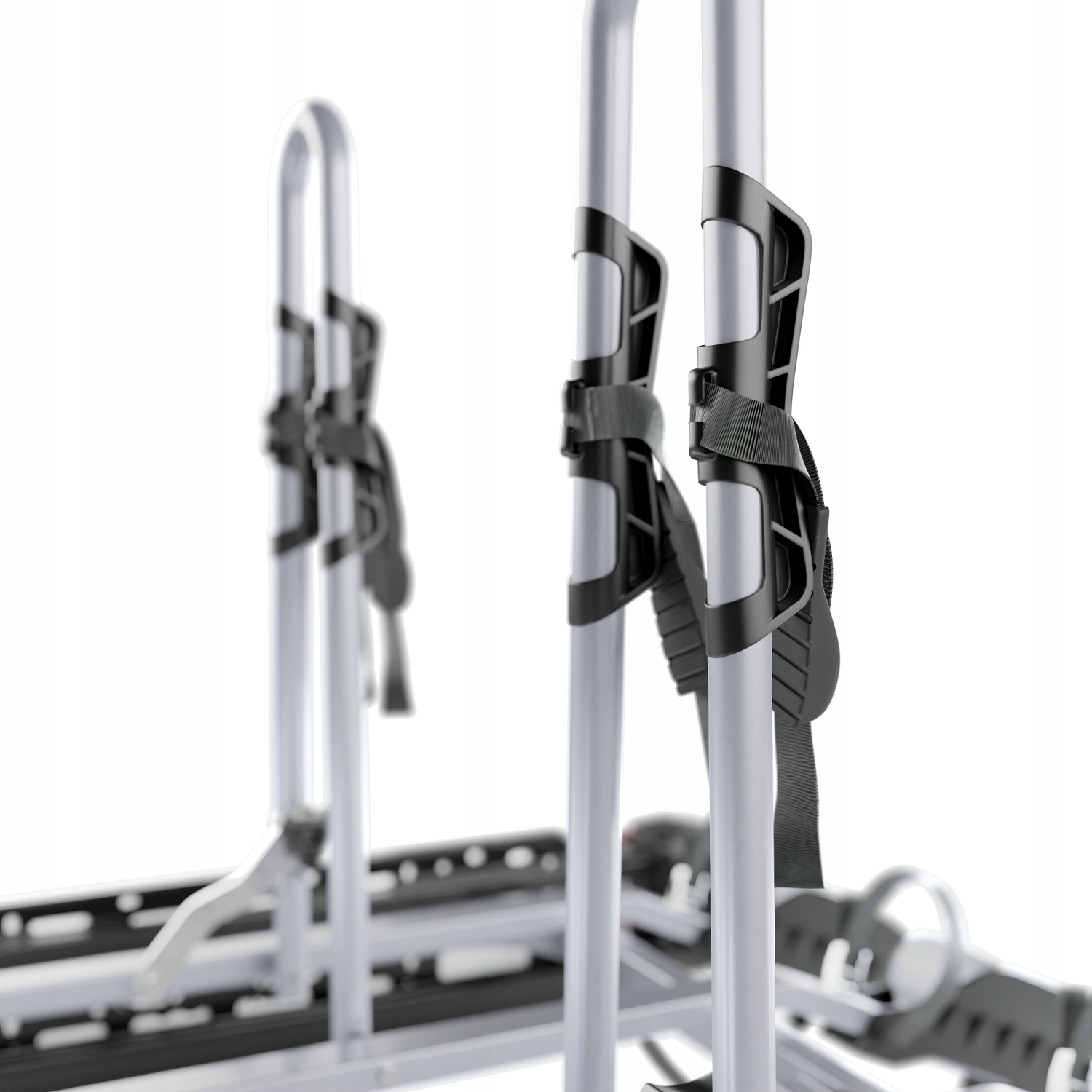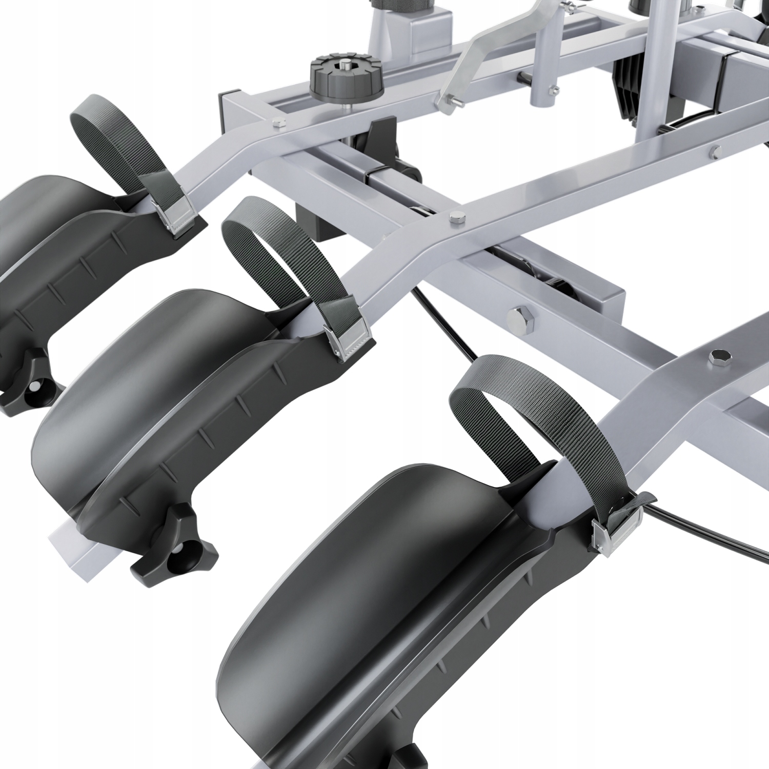 sistemu pritrditve, ki se uporablja v nosilcu (ročaj v obliki zvonca), montaža na kroglo vlečne kljuke, se izvede z zategovanjem gumba in zategovanjem vijaka s ključem, ki je priložen kompletu. To zagotavlja ne le varnost, ampak tudi prihranek časa. Široki nosilci koles z močnimi trakovi, katerih razmik je mogoče nastaviti. Omogočajo prevoz koles različnih velikosti