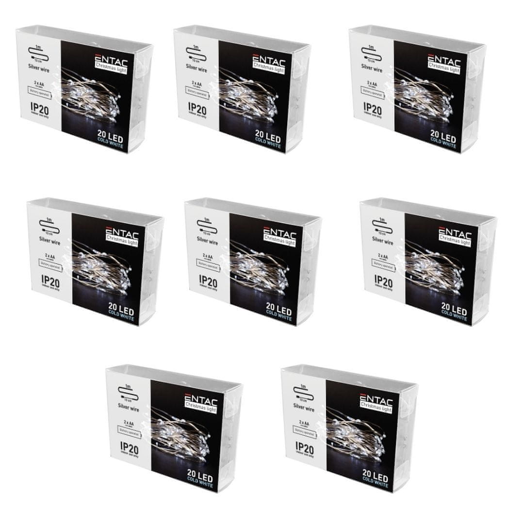 ENTAC 8x 1m 20 LED božično - novoletne micro LED lučke na baterije 2 x AA hladno bele