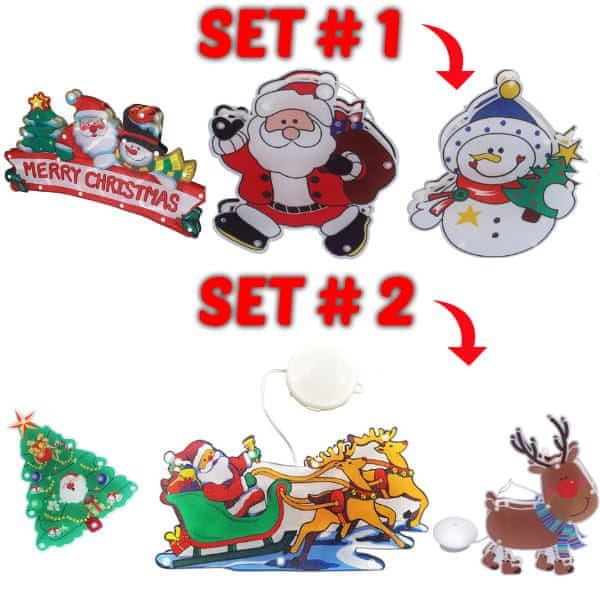 Sofistar Komplet LED božičnih obeskov za na steklo - Božiček in merry christmas, set #1