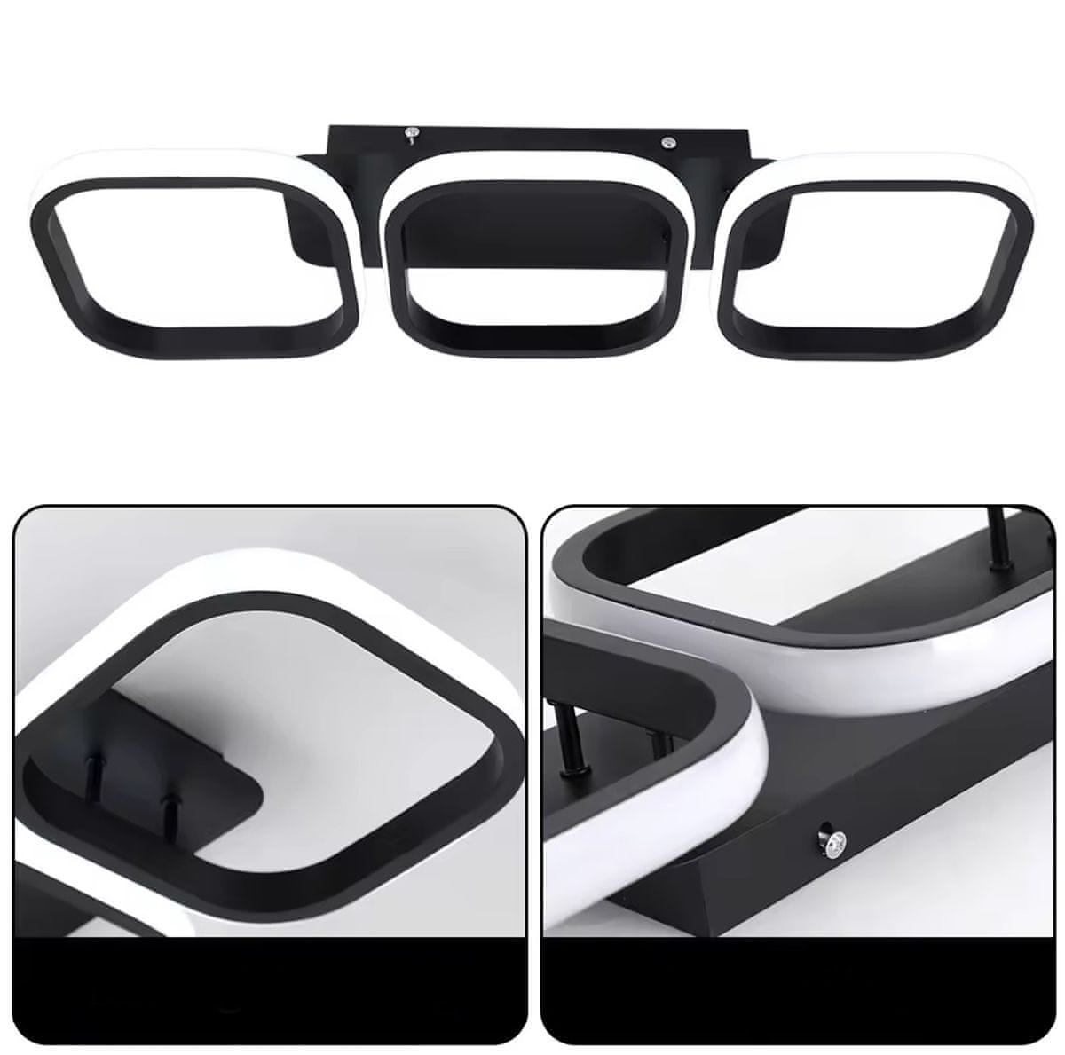 - Popoln dekorativni element s tremi prefinjenimi, zaobljenimi LED trakovi.