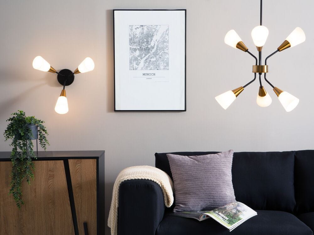 Beliani Bela-zlatorumena-črna stropna svetilka 6 odtenkov AROYO VI