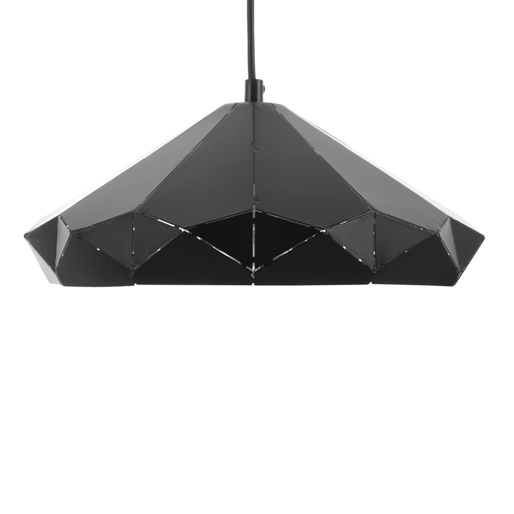 Čudovita viseča svetilka je del uravnotežene razsvetljave – ta svetilka bo osvetlila prostore z najboljšo svetlobo. Preprosta okrogla oblika dopolnjuje presenetljiv naguban videz, zaradi črne barve pa se ujema z vsemi sodobnimi življenjskimi slogi. Senčilo je izdelano iz robustne kovine in ga lahko postavite v vse bivalne in delovne prostore. Svetilka je opremljena s črnim kablom iz PVC in je primerna za žarnice s priključkom E27 z največ 40 W. Žarnica ni vključena.