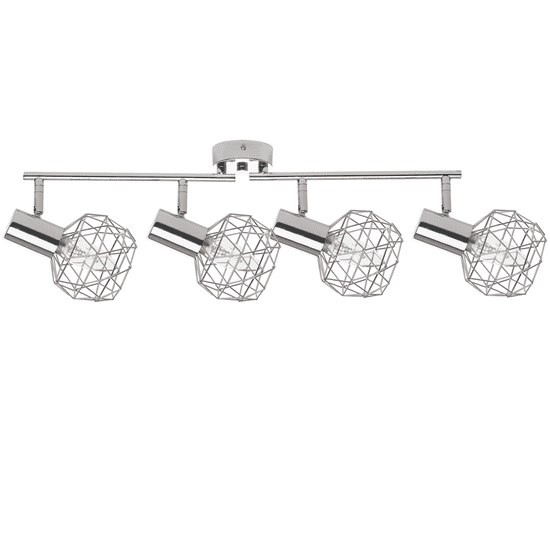 Elegantna stropna svetilka v srebrni barvi. Svetilka s štirimi pletenimi okroglimi senčili daje prostoru prijetno in toplo svetlobo ter ustvarja prijetno vzdušje. Zahvaljujoč vrtljivemu mehanizmu, ki je enostaven za uporabo, lahko svetilko nastavite po svojih željah. Zasnovan za žarnice E14 z največjo močjo 40 W. Žarnice niso vključene.