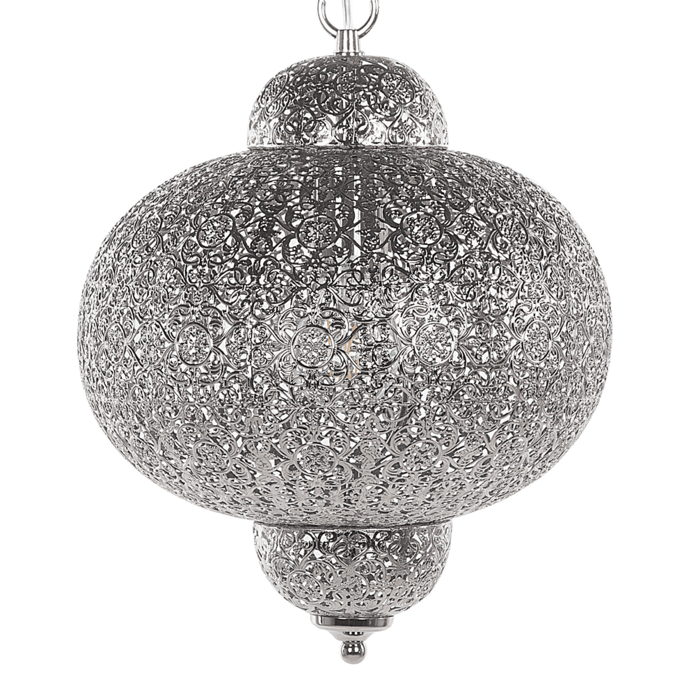 Ta svetilka z edinstvenim videzom odlično opravlja svojo vlogo obeska in dekoracije stanovanja. Zaradi orientalskih izrezov, ki krasijo kovinsko senčilo, meče romantično in toplo svetlobo. Ta dekorativna svetilka se lahko prilagaja različnim stilom opreme, tako modernim kot klasičnim, in z njo si lahko privoščite prijetno vzdušje. Svetilka je primerna za žarnice E27 z največ 60 W. Žarnica ni vključena.