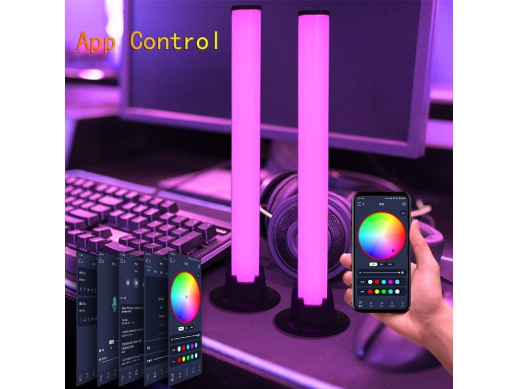 Sodobna pametna namizni svetilka, 2 kosa na pakiranje, višina 33 cm, nadzor preko telefona / tabličnega računalnika v aplikaciji Symphony Light, RGB barve (rdeča, zelena, modra) + več odtenkov, barva svetilke črna. Celoten opis