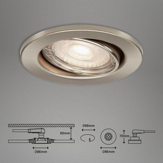 BRILONER LED vgradni panel set 3x3,5W nagibni, okrogli, krom, 8,6cm, 3000K