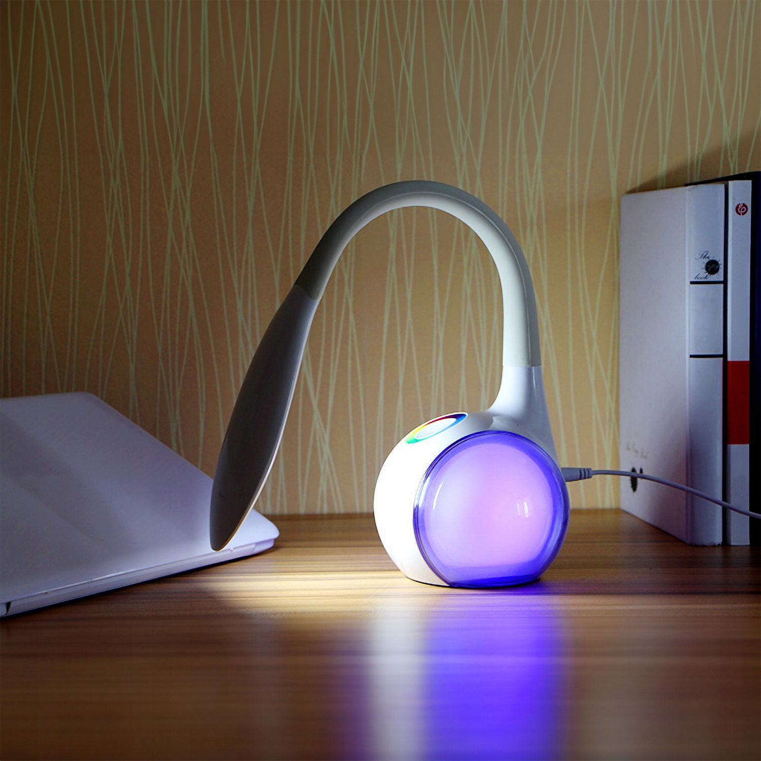 Namizna svetilka ima dva neodvisna vira svetlobe. RGB in BELA LED. Zaradi svoje večnamenskosti je popolna kot nočna lučka, otroška namizna svetilka ali romantična dekoracija.