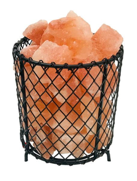 • Svetilka ima videz naravnih solnih kamnov v kovinski košari.
