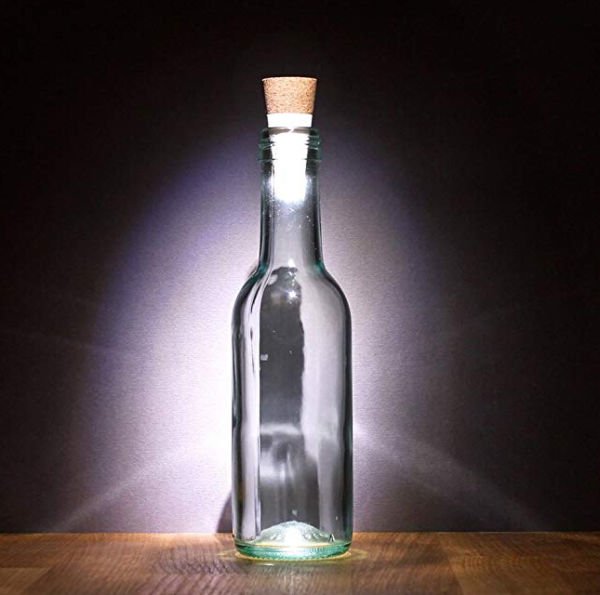 Ta 6,2 cm velik okrasni predmet je idealen za zapiranje steklenic in njihovo hkratno osvetljevanje. Svetilko je mogoče polniti preko USB vtiča, ki se odkrije, ko artikel odprete. Ta okrasni element (vključno z litijevo baterijo 3,7 V 90 mAH) lahko vklopite z obračanjem sprednjega dela. Ko je napolnjen, ta okrasni predmet zagotavlja 8 ur svetilnosti z osvežujočo barvo svetlobe 9000 Kelvinov. Ne glede na to, ali gre za vrtno zabavo ali prijetno večerjo v dvoje, je ta okrasni predmet absolutna paša za oči.