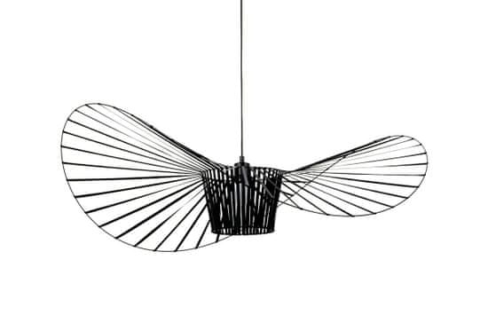 Črna viseča svetilka Capello Fi 80, izdelana iz plastičnega obroča. Obod s trakovi je povezan z notranjim senčnikom, ki skrije žarnico. Z ustvarjanjem lahke strukture, ki spominja na eleganten ženski klobuk. Zaradi svetlobne strukture se lahko svetilka premika pod vplivom gibanja zraka. Svetilka je opremljena s črno vrvico in črno prevleko. Capello je na voljo tudi v drugih velikostih in barvah. Premer svetilke: 80 cm Dolžina kabla: 200 cm Vir svetlobe: E27 MAX 40 W Neto teža 1 kos: 4 kg Teža paketa: 5 kg Največje število kosov v paketu: 1 Način pošiljanja: Paket Dimenzije paketa: 60 cm x 60 cm x 25 cm Izdelek za samosestavljanje: Da Skupna višina: 22 Širina: 80 Globina: 80