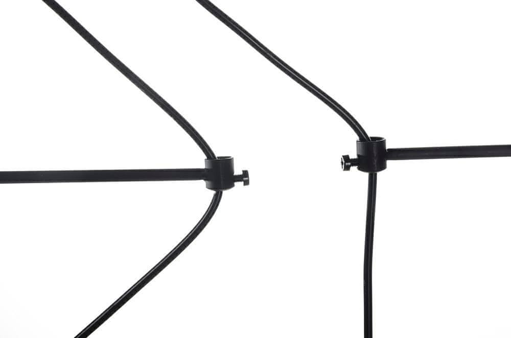 Viseča svetilka Flusso Line 4. Minimalističen in presenetljiv dizajn. Svetilka je izdelana iz štirih enakih žic. Obliko svetilke dajejo kovinski elementi, ki skupaj z žicami ustvarijo geometrijsko strukturo v črni barvi. Elementi omogočajo povezavo dveh črt in ustvarjanje dveh ločenih struktur. To o Celoten opis