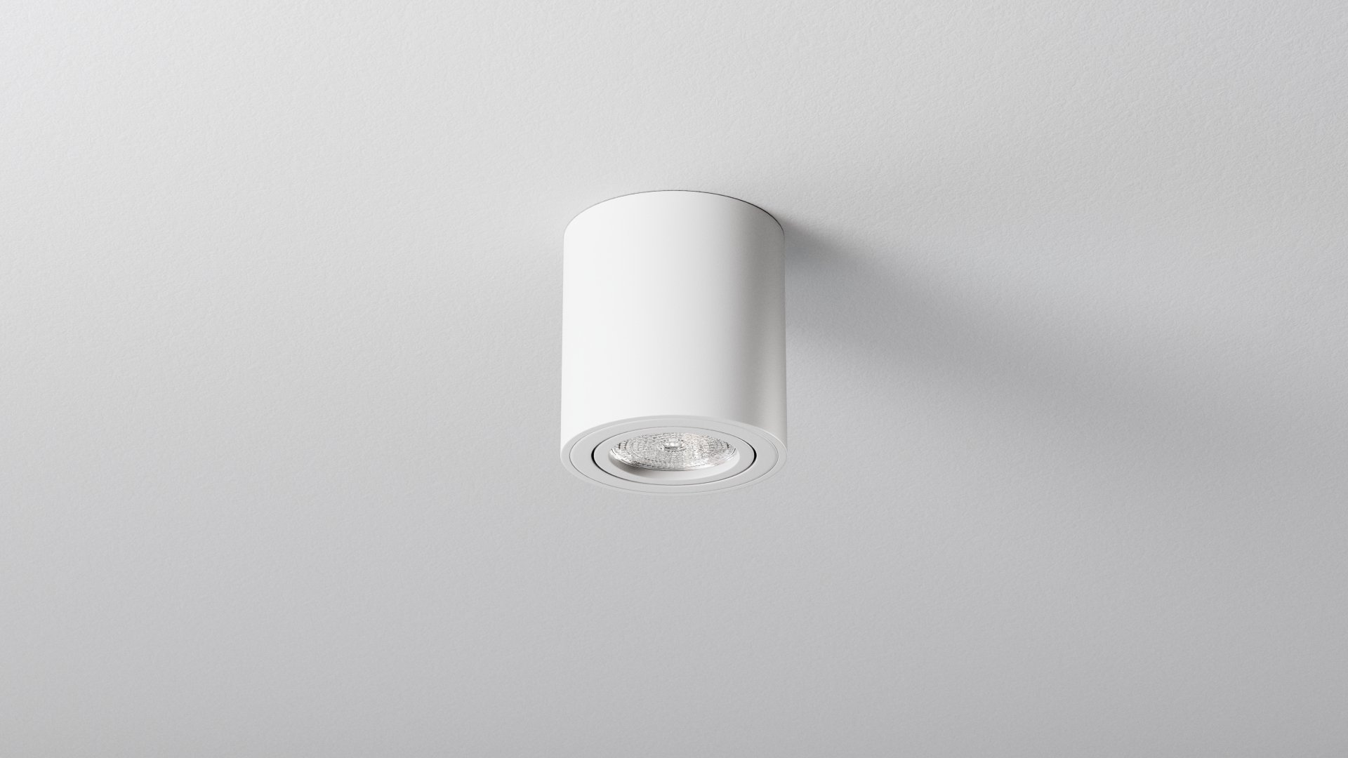 Svetilka je v obliki valja in je v beli barvi. Možnost nastavitve kota svetenja.