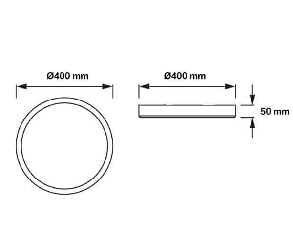 Dimenzija svetilke je Ø400 × 50mm.
