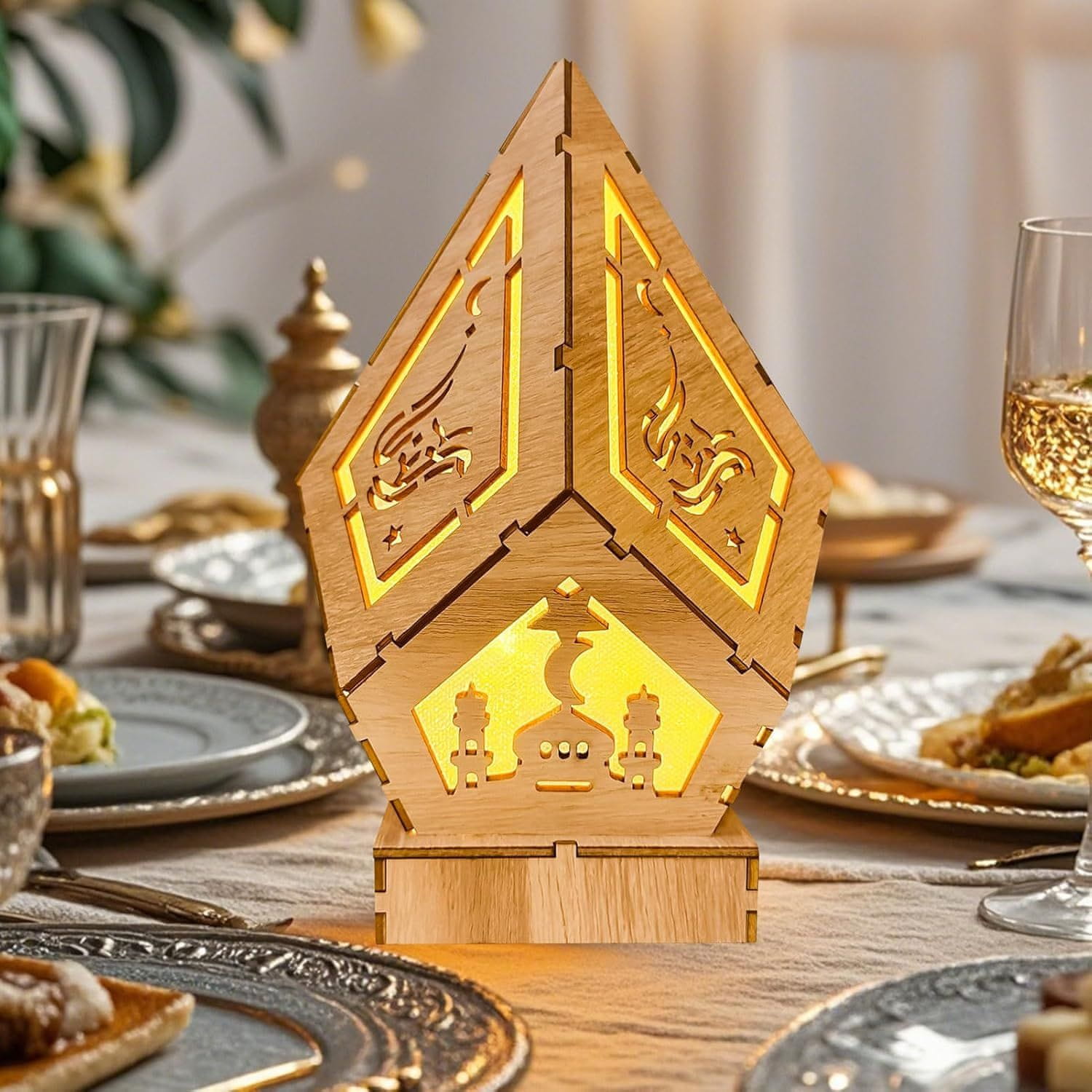 Dekorativna lesena LED svetilka za ramadan in Eid Mubarak 22 × 14 cm
