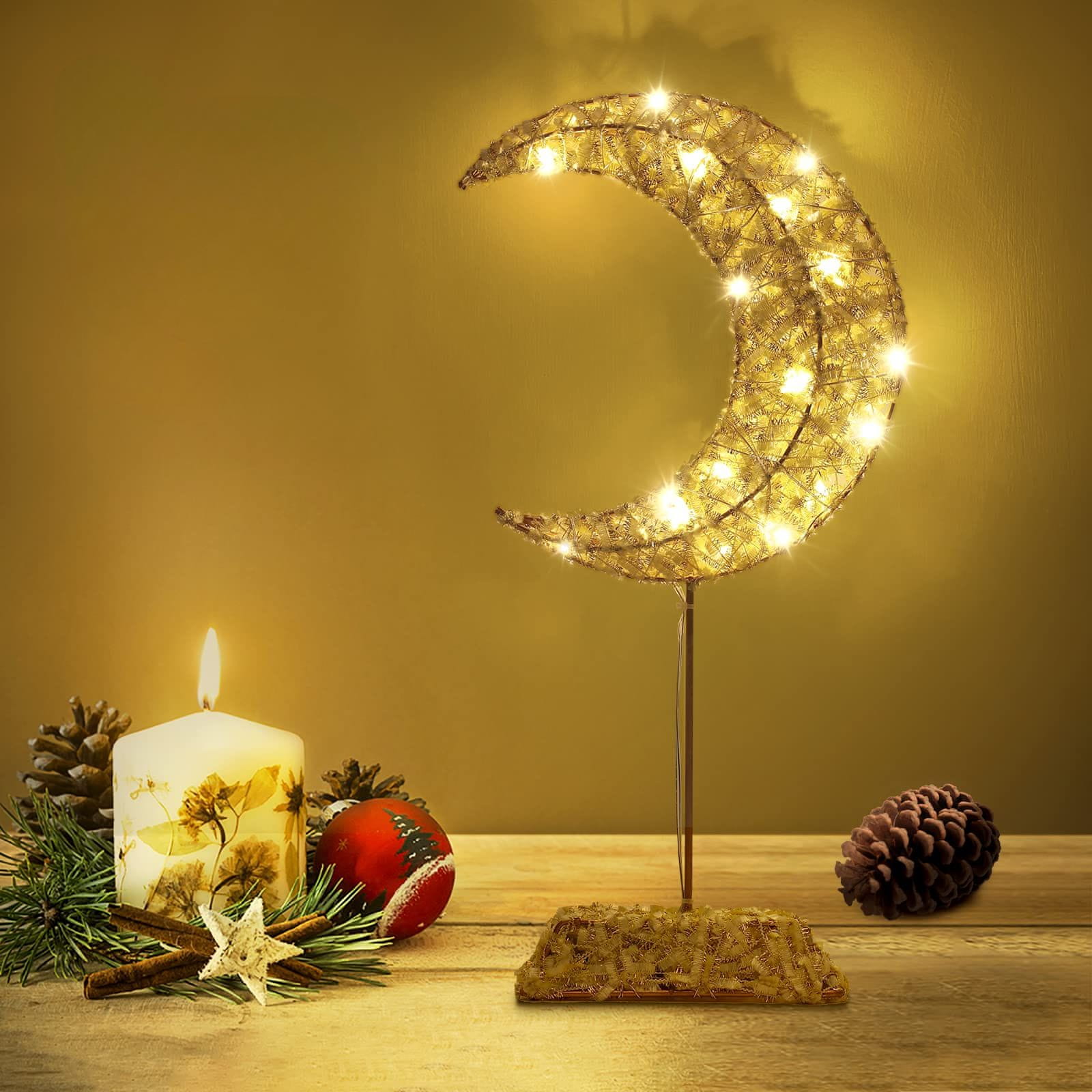 Nikcorp Namizna LED svetilka Luna 38 cm, zlata | Dekorativna nočna lučka na baterije, topla bela svetloba, okras polmesec