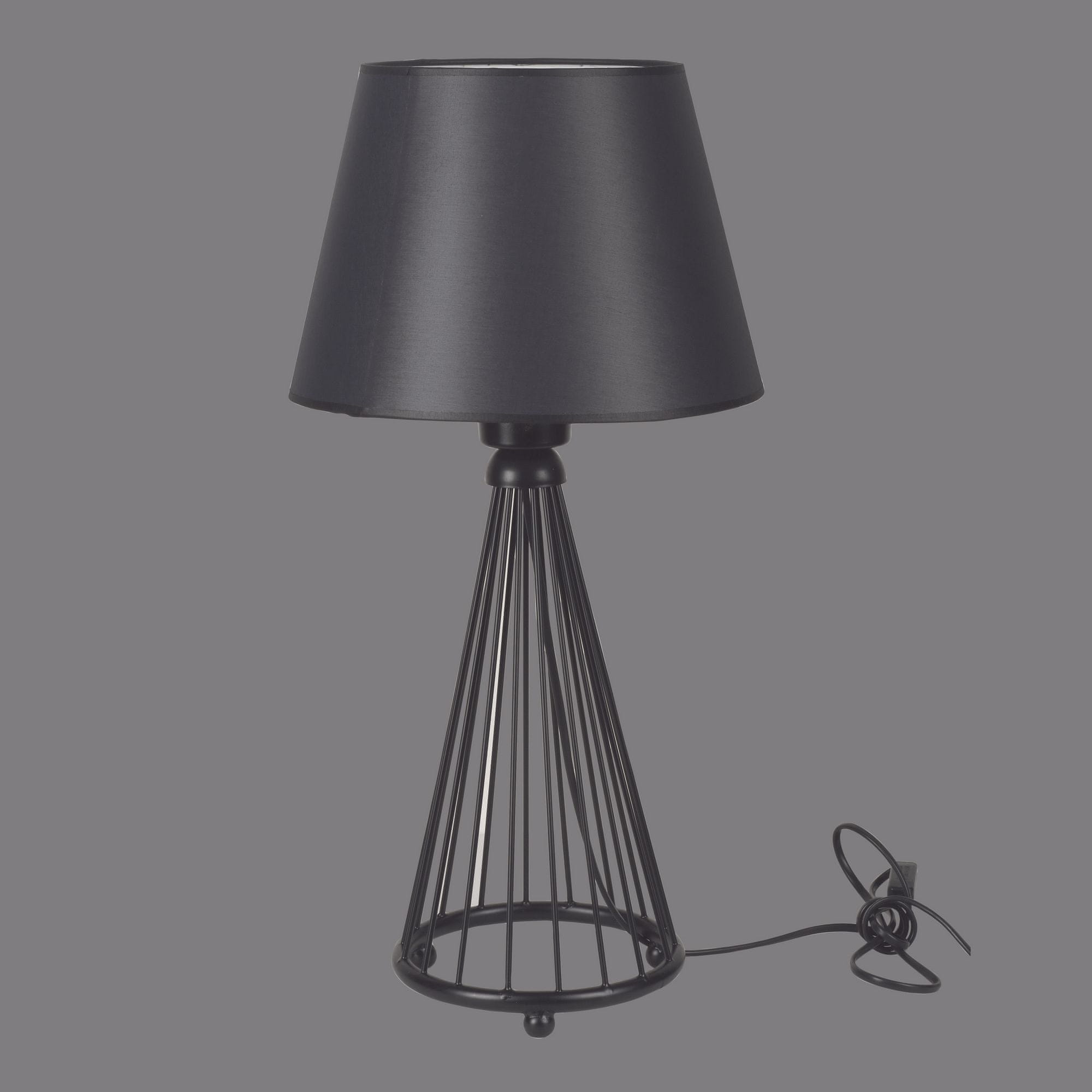 KOVINSKO TELO V pečici posušena barva Pokrovček iz tkanine Dolžina kape: 22 cm Premer pokrovčka: 20–30 cm Premer noge: 19,5 cm Skupna višina: 61 cm Dolžina kabla: Dolžina kabla: 150 cm Gumb za vklop in izklop na kablu Vrsta vtičnice: E 27 Max 60 W