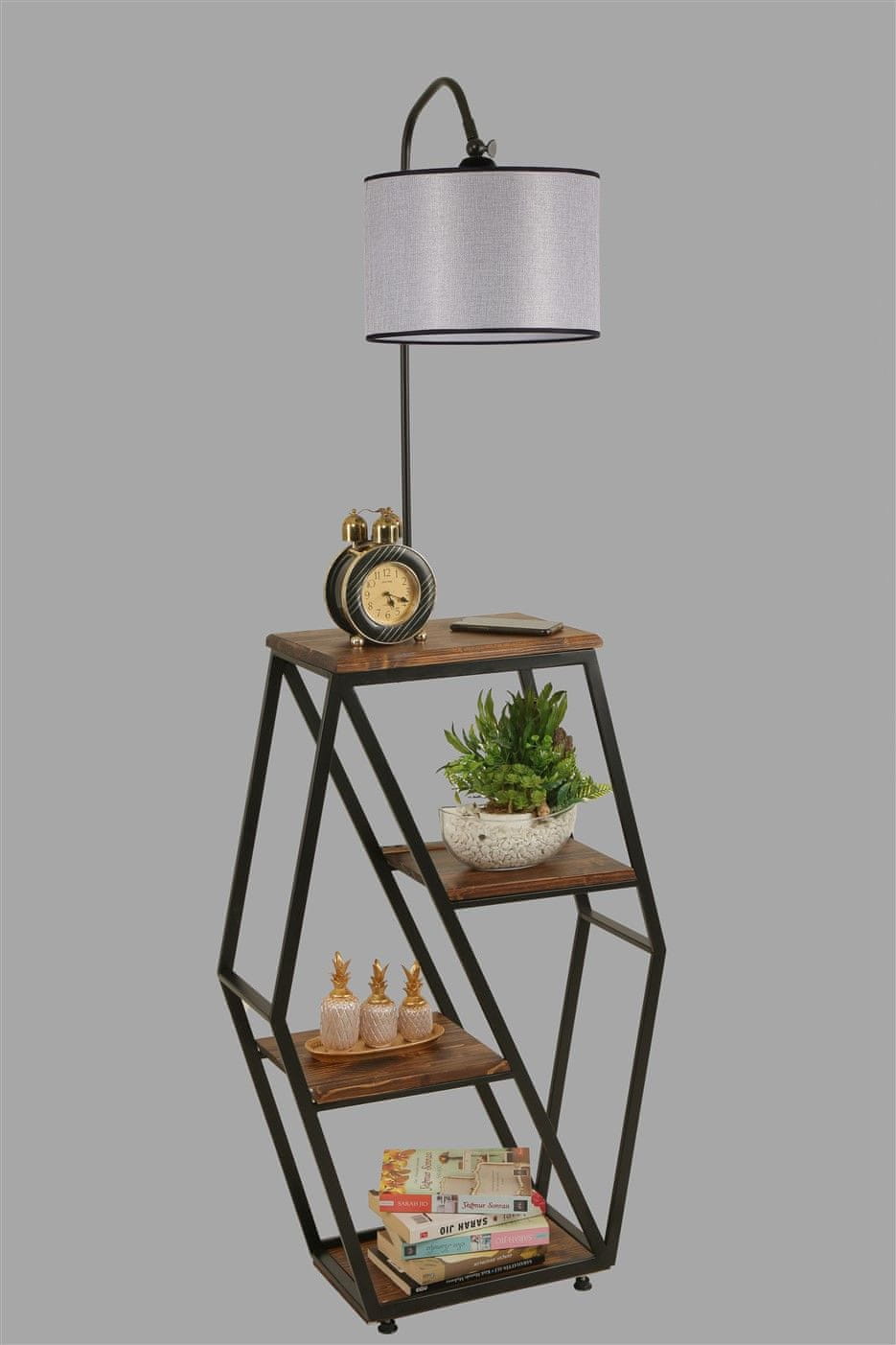 KOVINSKO TELO Stojalo za knjige: 100 % ognjeno leseno Elektrostatična barva, posušena v pečici Velikost: 38 × 25 cm Višina stojala: 90 cm Skupna višina: 165 cm Vrsta vtičnice: E 27 Max 60 W Največja napetost: 220–240 V