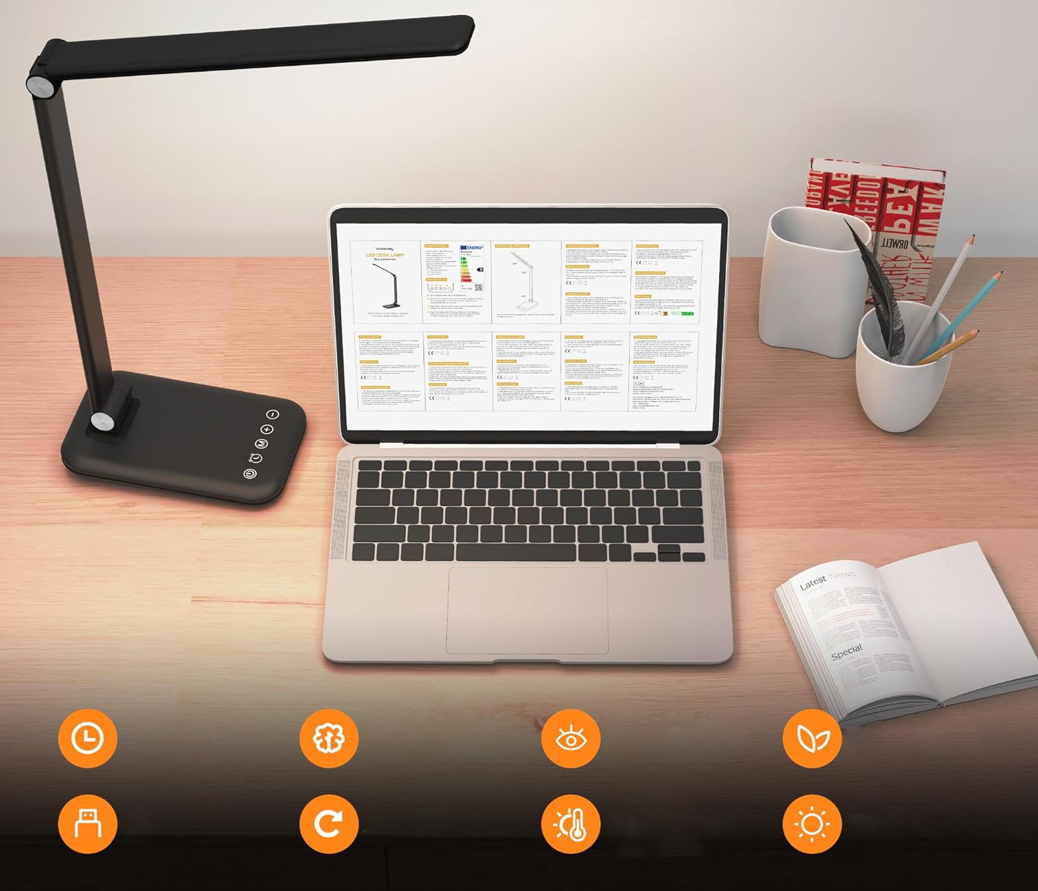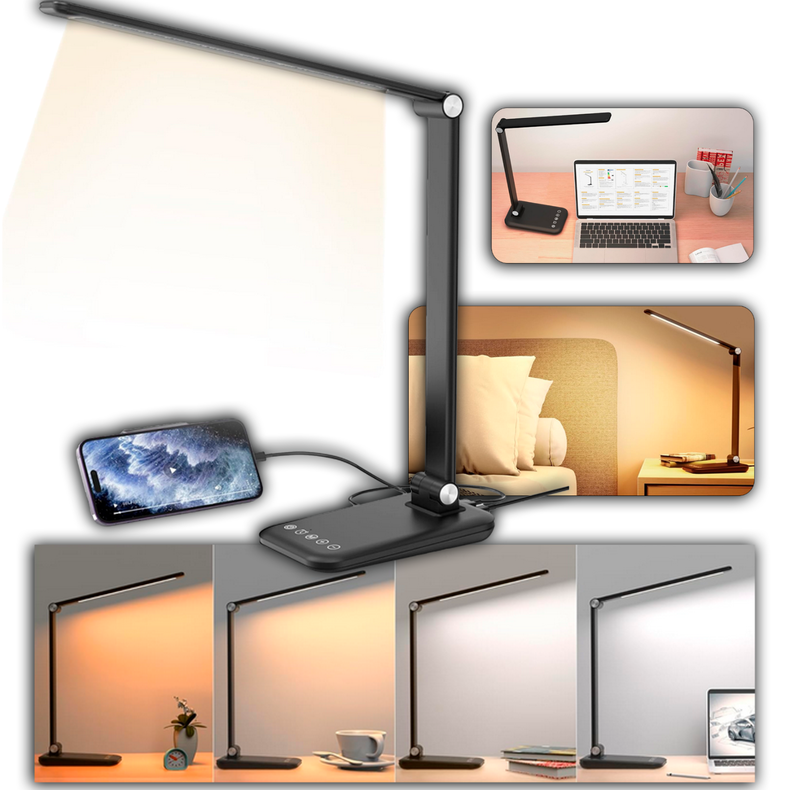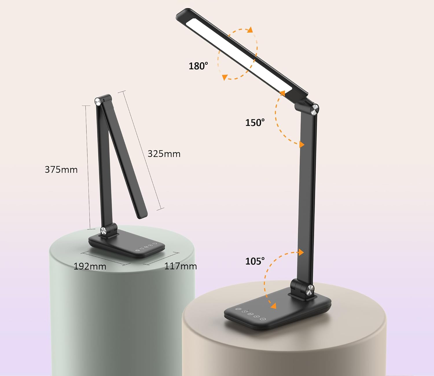 Namizna svetilka ima roko, ki se vrti za 180° in zloži za 150°, kar vam omogoča, da svetilko postavite pod želeni kot. Podnožje zatemnljive namizne svetilke ima vrata USB, ki omogočajo polnjenje telefona, bralnika e-knjig ali drugih naprav.