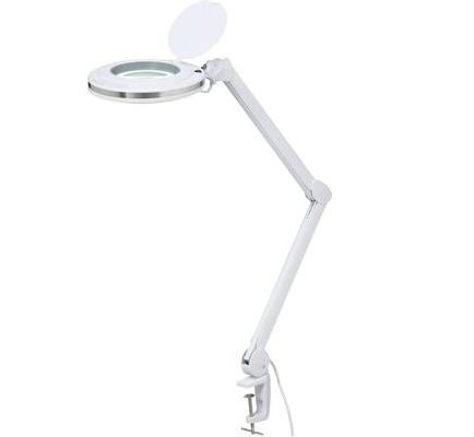 TOOLCRAFT TO-7173468 LED-svetilka z lupo Faktor povečave: 1.75 x EEK: F (A – G) Zmogljiva, energijsko varčna povečevalna svetilka s 60 SMD LED diodami in elegantnimi kovinskimi aplikacijami. Visokokakovostna steklena leča z 1,75 -kratno povečavo (3 dioptrije) je idealna za filigransko delo. Nastavlj Celoten opis