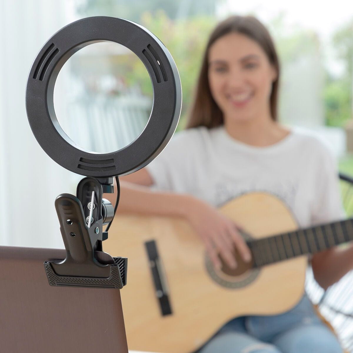 The Lumahoop InnovaGoods selfie ring light with holding clamp enables you to improve the lighting and quality of thepicture on a laptop, achieving an optimum and more professional result inrecording videos, live streams, video calls, video conferences, photographs andselfies, make-up sessions, etc. This versatile multifunction ring lightcan also have other uses such as an auxiliary LED light, reading light,etc. It comes with a support and holding clamp so that it can be placedeasily on your laptop, on the headboard of the bed, on a table or desk, etc.