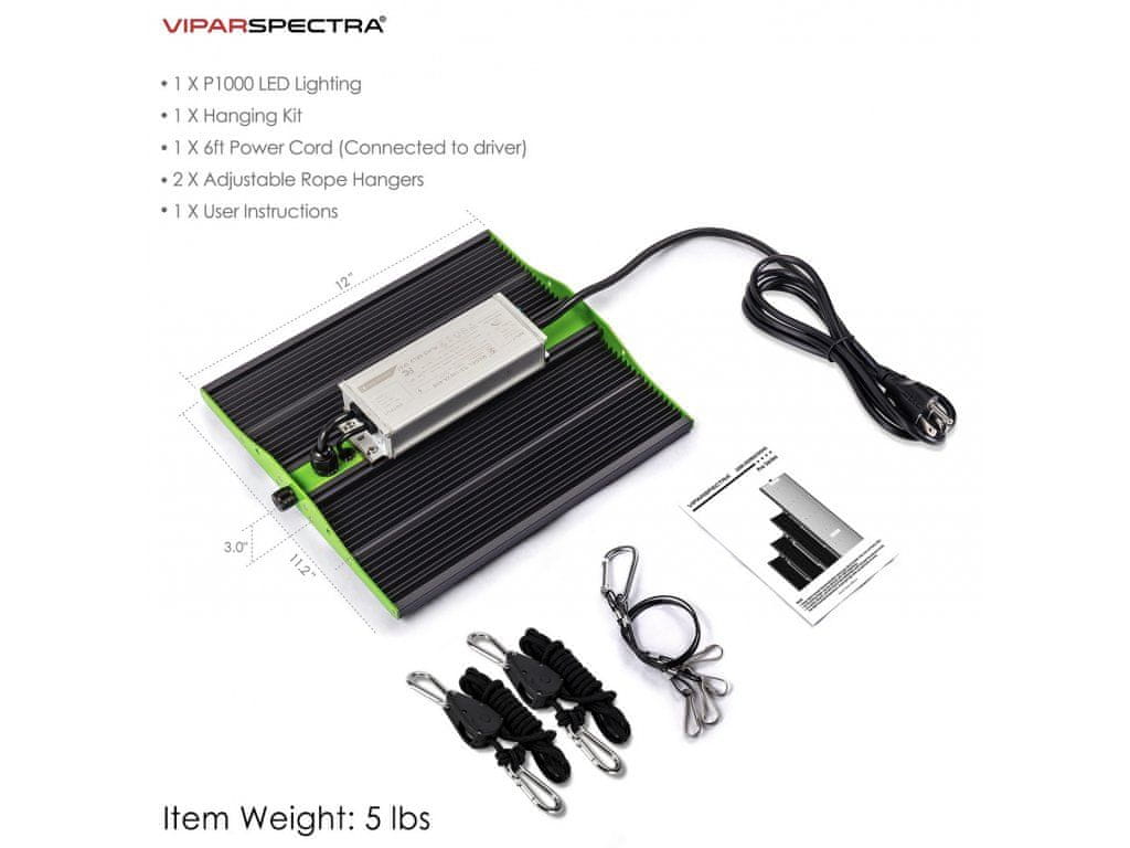 Svetilka ViparSpectra PRO 1000/100W ima nove LED plošče v slogu QB z visoko močjo, ta serija izboljšuje pridelek rastlin in ima visoko OZO. Idealen je za vse vrste rastlin v vseh fazah rasti.