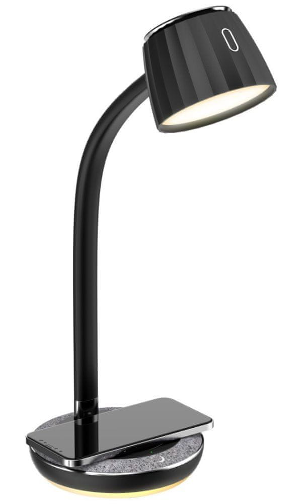 Vsefunkcionalna namizna svetilka LED z vgrajenim brezžičnim polnjenjem Qi in prilagodljivo zasnovo.