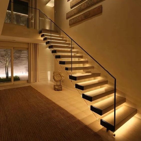 Set za samodejno LED osvetlitev stopnišča je zasnovan za eleganten, dinamičen in varen sistem osvetlitve notranjih stopnic.