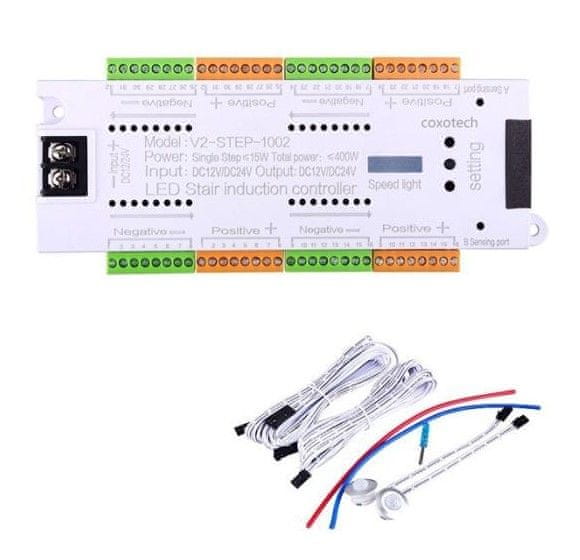 Set za samodejbno osvetlitev stopnišča je idealna rešitev za moderno notranjo arhitekturo, kjer želite urejeno in sekvenčno osvetlitev stopnic, ki je obenem funkcionalna in estetska. Ta kontroler ne le izboljša vidljivost in varnost na stopnicah, ampak ustvari tudi privlačen svetlobni učinek, ki se odziva na gibanje.