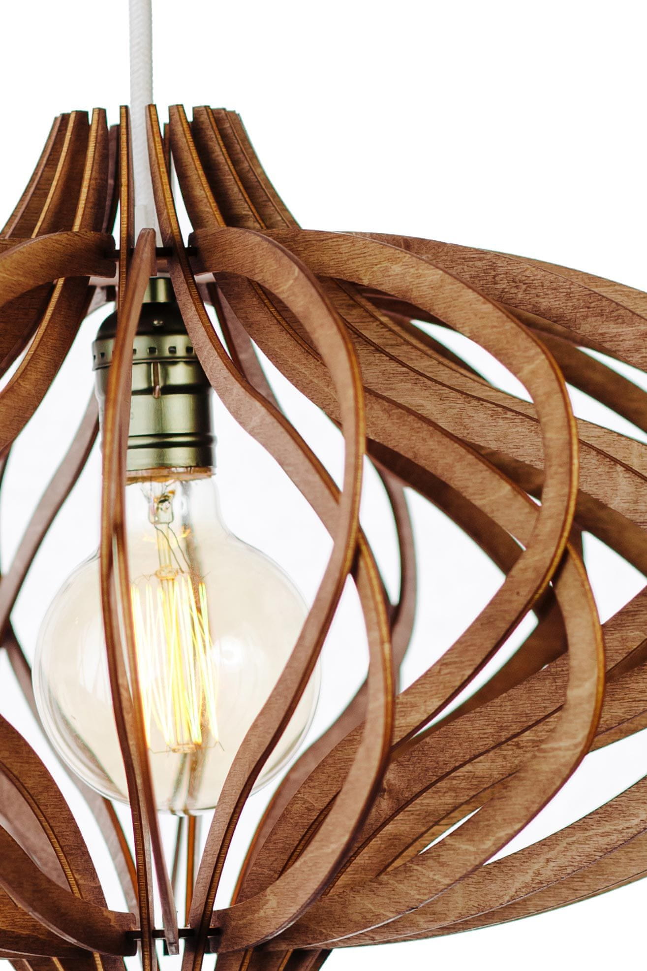 Senčnik tega lesenega lestenca spominja na znamenite izume Leonarda da Vincija, poznane iz njegovih risb. Elementi so izdelani iz naravne breze vezane plošče, impregnirane z voskovim oljem. To je ena najbolj okolju prijaznih kombinacij: les, vosek in ljubezen do oblikovanja — varna in prijetna za celotno družino.Oblikovalska domišljija, uresničena v naravnih materialih. Viseča svetilka iz skrbno obdelane breze vezane plošče, katere bogata tekstura je poudarjena z voskovo-oljnim premazom. Prepleteni deli senčnika učinkovito razpršijo svetlobo lestenca.