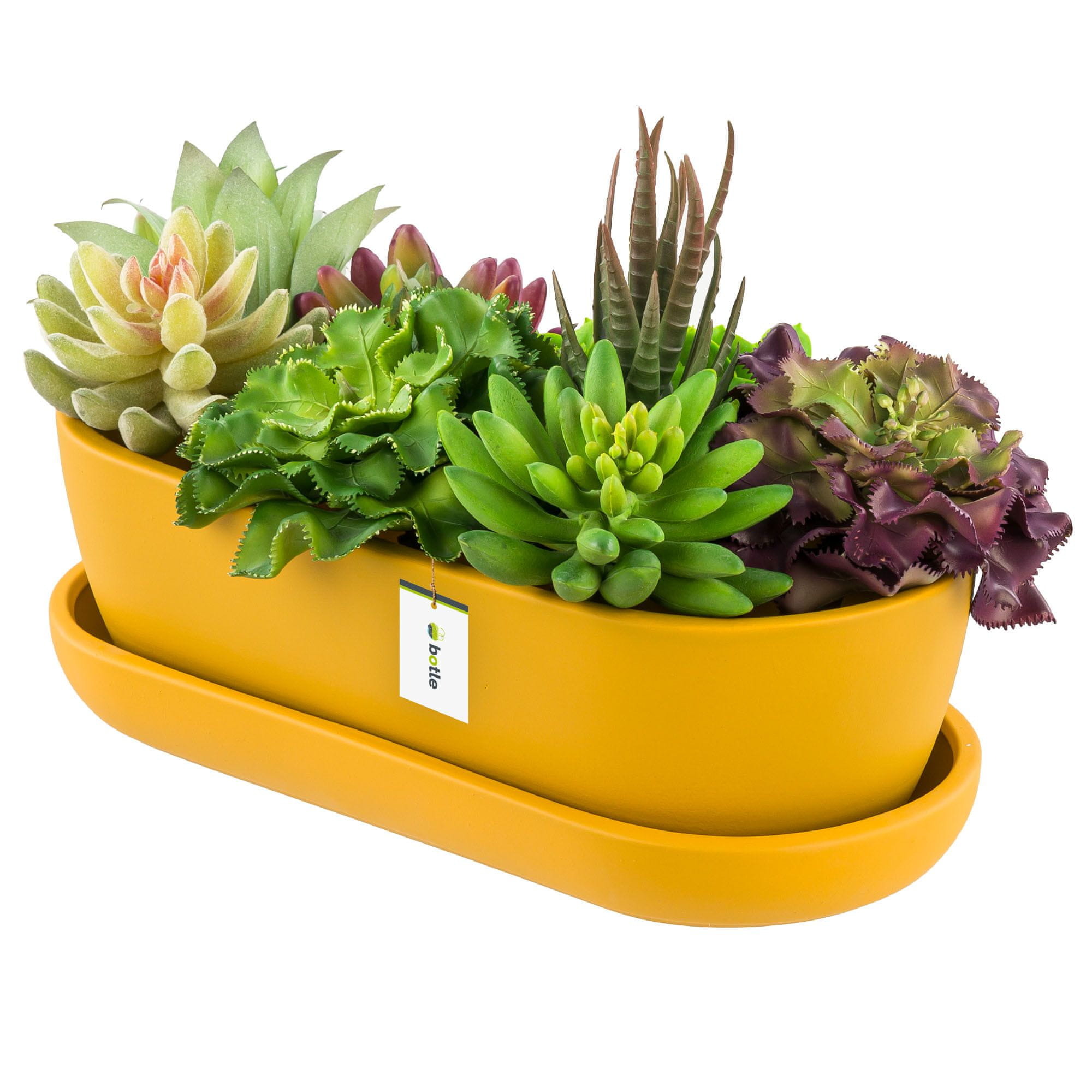 botle Keramični cvetlični lonec moderne barve Rumena Matte 27,5 cm Ovalni lonec za kaktuse
