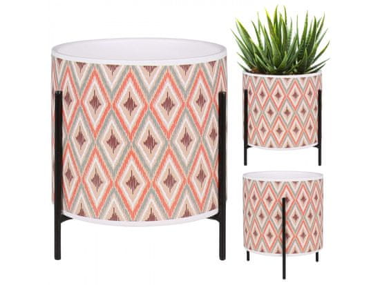 Ta bež keramični lonček je zasnovan z mislijo na sodobne notranje prostore. Lonček izstopa s svojim geometrijskim vzorcem v toplih barvah, ki v prostor prinaša prijetno vzdušje. Črno, kovinsko stojalo ne le dodaja stabilnost, ampak tudi elegantno kontrastira z vzorčastim dizajnom. Ta lonček je ideal Celoten opis