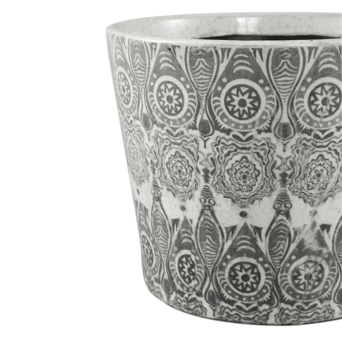 Eleganten okrogel keramični cvetlični lonček BEIRE v sivo-beli specifikaciji je popoln dodatek za vaše najljubše rastline. Njegov nežen in nevsiljiv dizajn z diskretnim vzorcem se zlahka ujame v vsakem notranjem prostoru in mu doda rahel pridih moderne elegance. Celoten opis