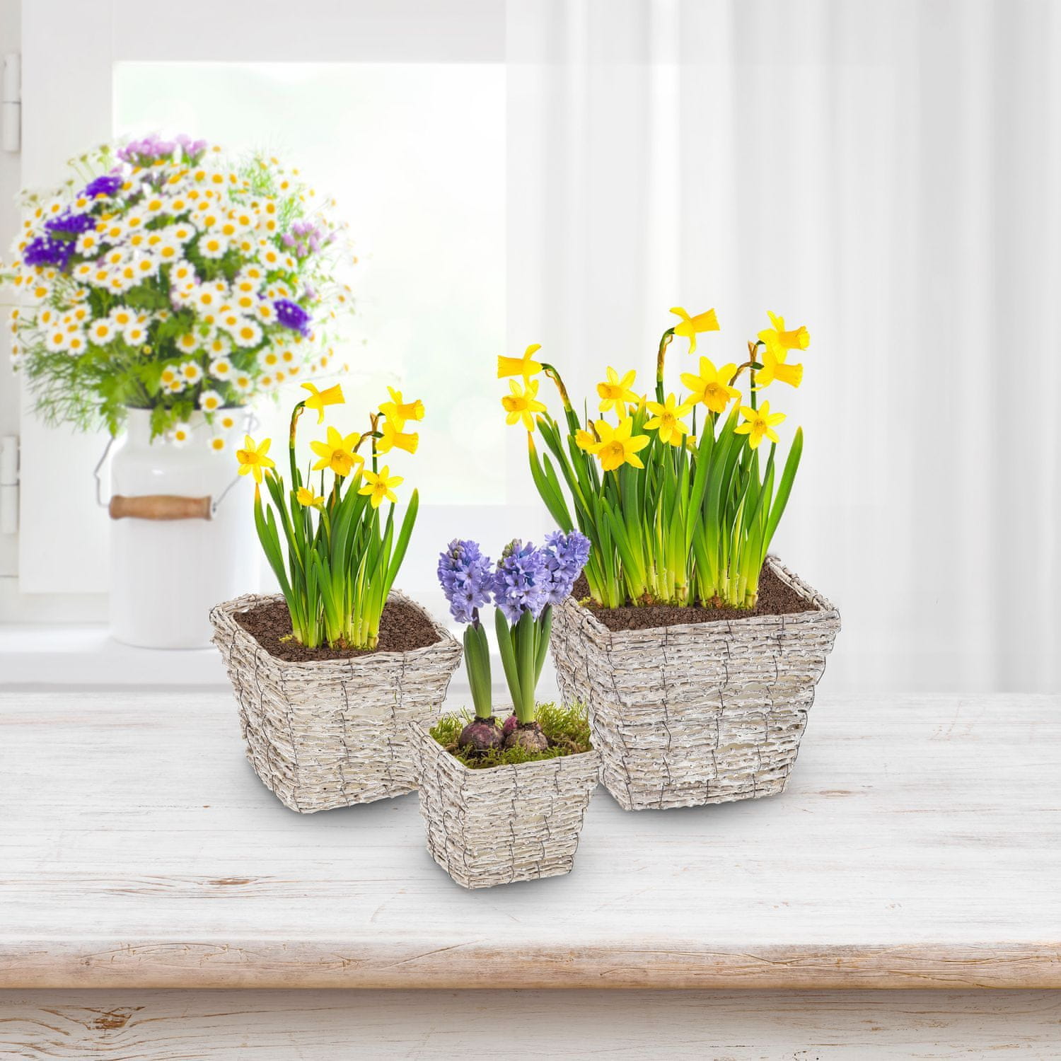 • Predstavite svoje rastline z rustikalnim dizajnom iz belega ratana.