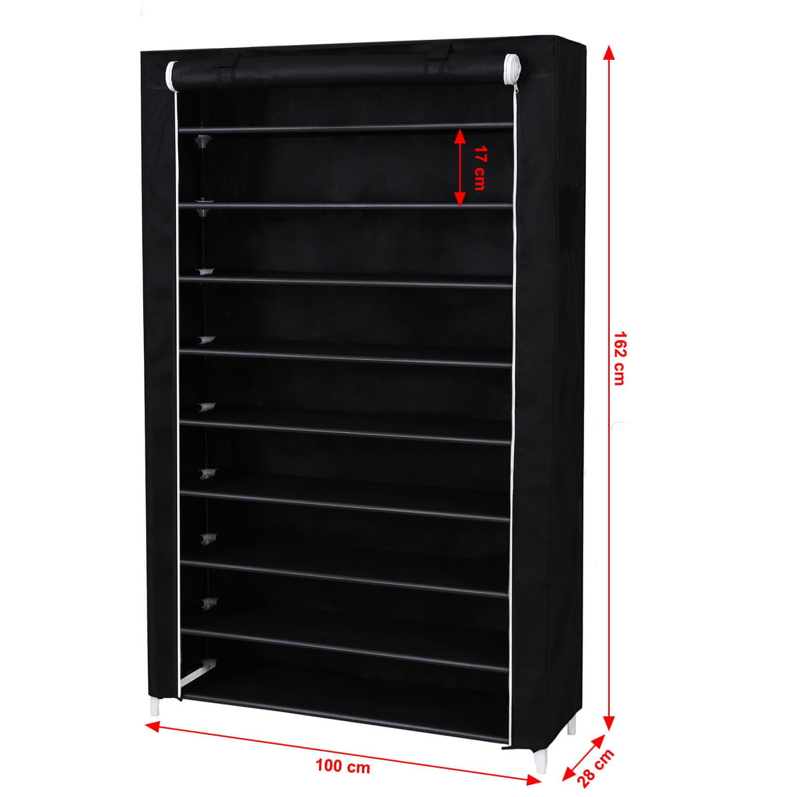 Opis izdelka blagovne znamke OSKAR: TEKSTILNA OMARA ZA OBUTEV, ČRNE OBLIKE, 9 POLIC Tekstilna omarica za čevlje z enimi vrati iz jeklenih cevi, ki tvorijo njeno ogrodje, in visokokakovostnih materialov, enostavna za čiščenje. Prevleka omarice je izdelana iz zračnega materiala in se zapenja z dvema zadrgama. Ta zelo praktičen kos pohištva bo našel svojo uporabo v predsobi, hodniku, garderobi ali avli. Omarica ima 9 polic za čevlje, ki lahko, odvisno od velikosti, sprejmejo do 45 parov čevljev. Naj v vašem hodniku ali na hodniku zavladata mir in red. Omara vam ne omogoča le organizacije prostora, temveč tudi prihrani prostor v sobi. Omarica se bo zagotovo podala v dekor mnogih notranjosti. Jeklena konstrukcija in visokokakovostni plastični spojniki zagotavljajo stabilnost pohištva. Popolnoma vgrajeni elementi okvirja bodo vaši notranjosti dodali čar. Poskrbite za estetiko vašega hodnika, garderobe ali koridorja z izbiro preverjenih izdelkov najvišje kakovosti. Police v polni obliki jih naredijo še bolj funkcionalne, saj jih lahko uporabljamo ne le za odrasle čevlje, temveč tudi za otroške čevlje, tudi tiste najmanjše. SPECIFIKACIJA Barva: črna Material: netkana tkanina, kovinske cevi, plastični konektorji Dimenzije: 100 × 28 × 162 cm (širina x globina x višina) Razdalja med policami: 17 cm Teža: 4,4 kg Največja obremenitev na polico: 3 kg Največja obremenitev na omaro: 27 kg Izdelek za samostojno montažo OPOMBE: – Otroci se zaradi nevarnosti ne smejo plezati na izdelek ali se igrati z njim. – Ne premikajte pohištva, ko so vanj čevlji. – Izdelek je namenjen samo za uporabo v zaprtih prostorih. Če želimo na polico postaviti višje čevlje, na primer škornje, priporočamo, da elementov ne montiramo na eno polico. Garderoba je primerna za garderobo in spalnico, idealna pa bo tudi za študente, popotnike in ljudi, ki želijo organizirati svoj domači prostor in hkrati prihraniti veliko prostora. Omarica ne vključuje opreme, prikazane na fotografijah. Omara ima 1 zaveso, ki je opremljena z ježkom, zaradi česar se zavesa lahko zvije, kar olajša dostop do čevljev. Omarica odlično ščiti čevlje pred prahom in umazanijo. Police so izdelane iz netkane tkanine, laminirane s polipropilensko folijo, zaradi česar so enostavne za čiščenje in vodoodporne. Logistični podatki 1 x SKU 2454 teža 4,9 kg bruto – dimenzije 97,5 × 16,5 × 15 cm.