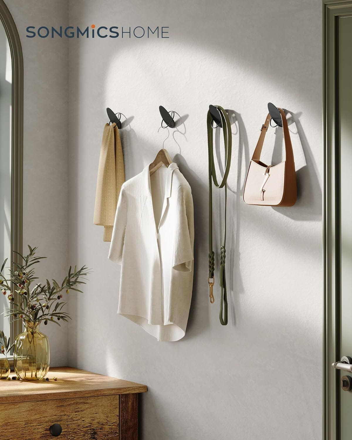 Songmics Stenski kavelj, 4 kos, 7,2x5,2x8,5 cm, črna