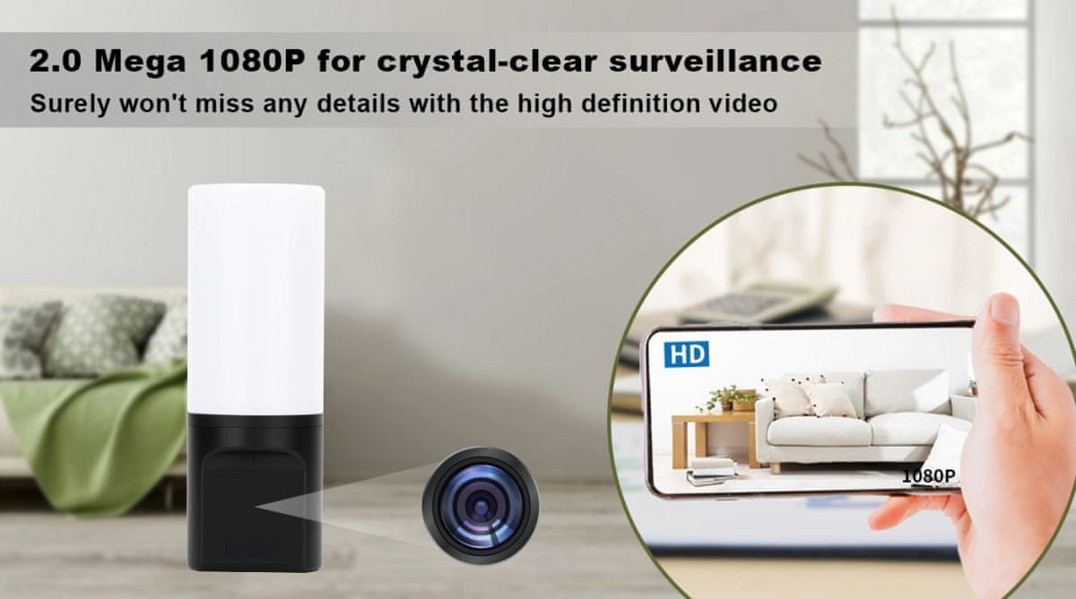 Ta kamera je primerna za vsakdanjo uporabo, zlasti v manjših prostorih, ki jih je treba zasesti v celotni širini. Kombinacija svetilke in kamere je idealna za spremljanje vhoda ali hodnika Ob zaznavi gibanja se svetloba svetilke prižge le za eno minuto, nato pa se ugasne. Poleg tega lahko z mobilno aplikacijo na daljavo spremljate trenutno živo sliko, ki jo zajema kamera, ali že posnete posnetke, shranjene na pomnilniški kartici, vstavljeni v napravo. Stenska svetilka s skrito kamero ima infrardeči nočni vid do razdalje 5 metrov, opozori vas, ko zazna gibanje, lahko snema v neskončni zanki in lahko snema med polnjenjem.