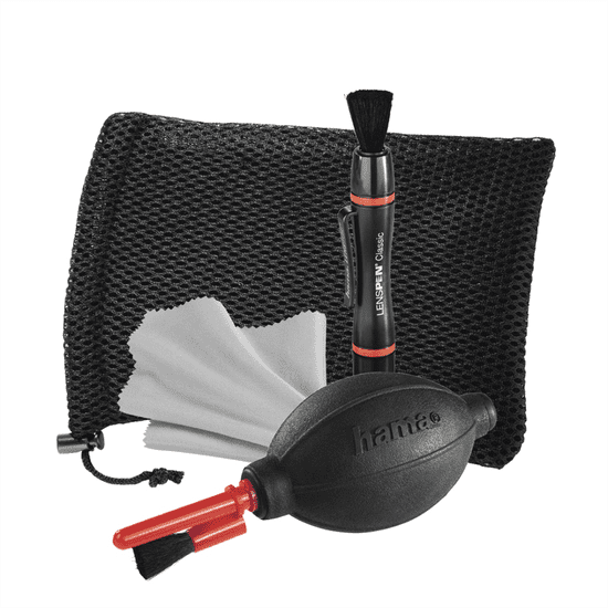 • vsebina kompleta: pihalni balonček s krtačko, čistilna krpa, profesionalna krtačka za optiko Lenspen, kovček za shranjevanje/prevoz