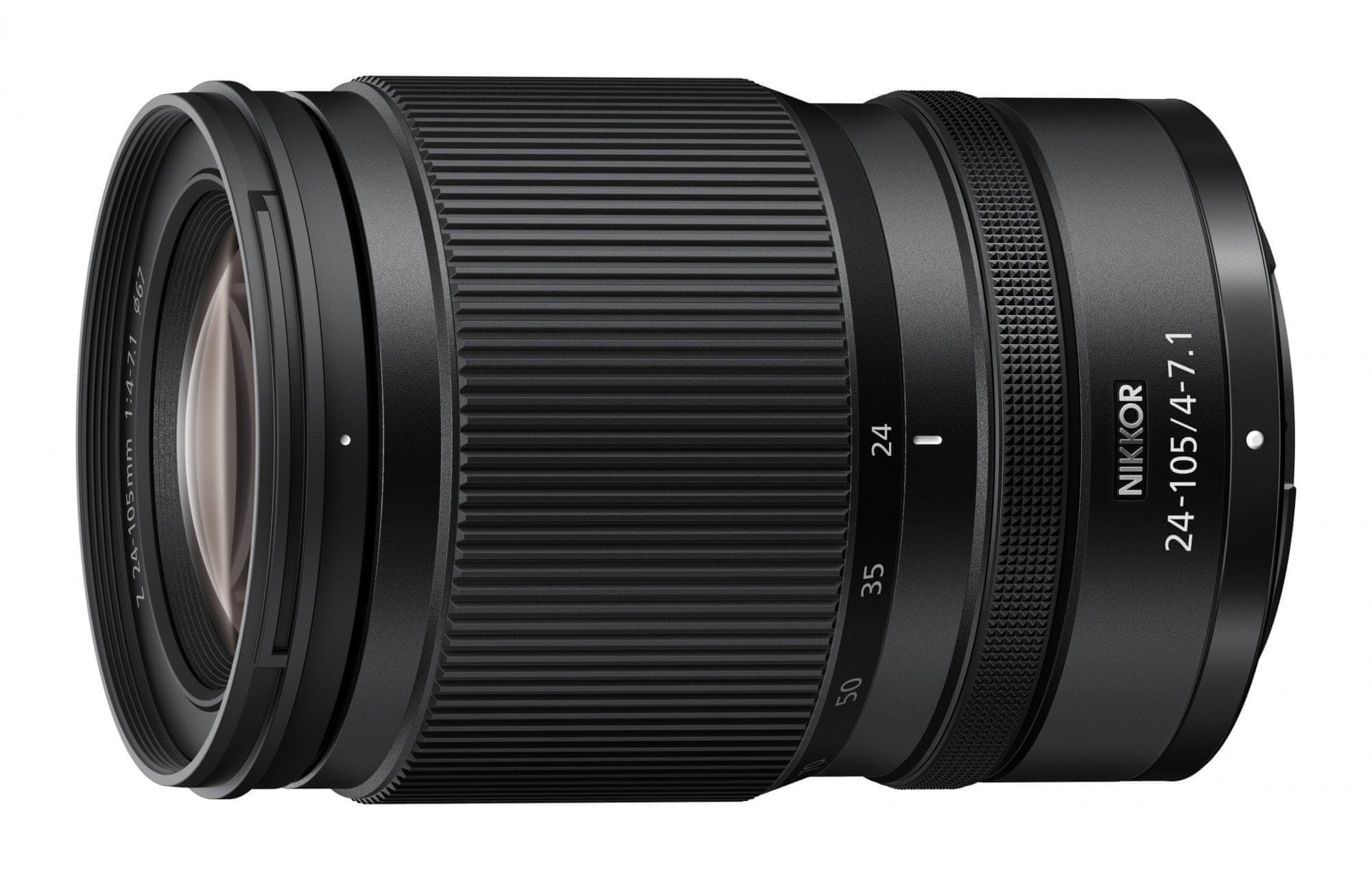 Objektiv NIKKOR Z 24–105 mm f/4–7.1 znamke Nikon združuje širok razpon goriščne razdalje v kompaktni in prenosni obliki. Zasnovan je za brezzrcalne fotoaparate z bajonetom Z in senzorji polnega formata (FX) ali formata DX. Njegova zasnova omogoča uporabo pri različnih fotografskih žanrih, od širokokotnih pokrajin do portretov in makro posnetkov tihožitij.
