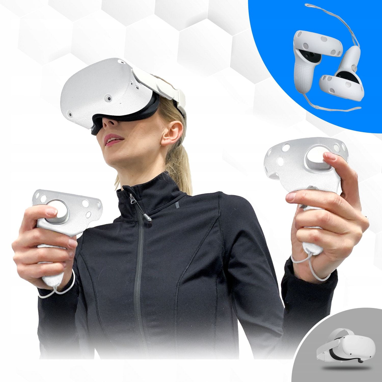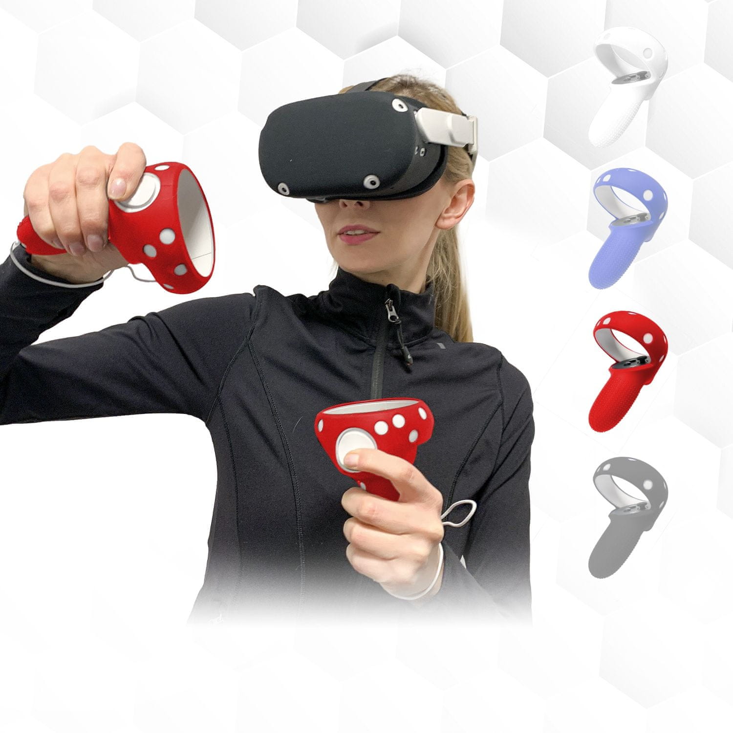 Ščitniki iz visokokakovostnega silikona za slušalke Oculus Quest 2, za zaščito krmilnih elementov pred udarci ali padci, kar se žal zelo pogosto dogaja pri igrah iz sveta Oculus Quest, pa tudi pri SteamVR itd.