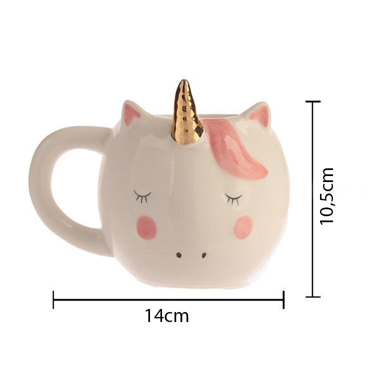Širok rob te skodelice omogoča shranjevanje velike količine tekočine. Ta skodelica sprejme velike količine čaja, kave, vroče čokolade, latteja in drugih vročih napitkov. Ne skrbite za nenehno polnjenje. Ta skodelica v obliki samoroga sprejme popolno količino pijače za vas. Je odličen dodatek k vaši zbirki skodelic.