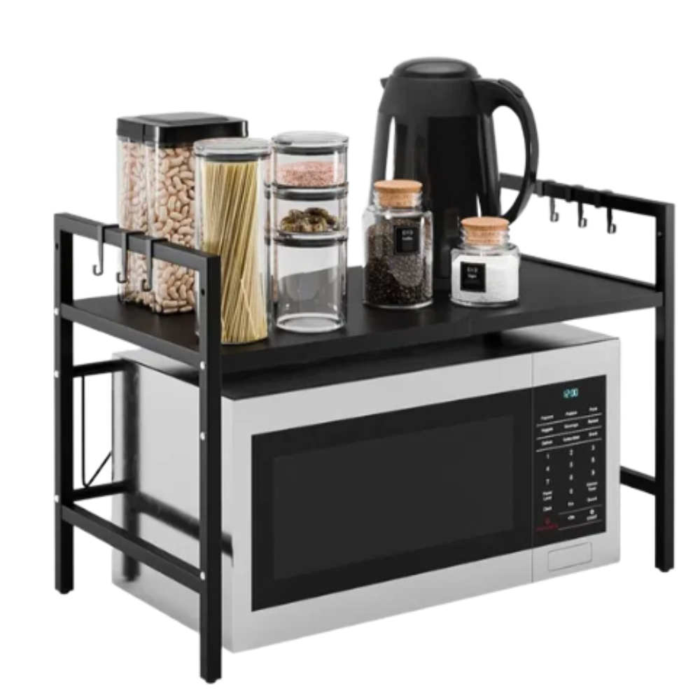 shumee Stojalo za mikrovalovno pečico, raztegljiva polica, teleskopska nastavitev, organizator za podstrešje
