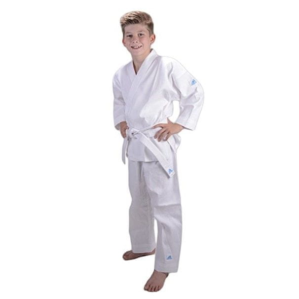 Otroško karate kimono adiSTART, Adidas je najboljša izbira karate kimona za začetnike. Narejena je iz polibombaža; 55% bombaž, 45% poliester, 200 gm2. Na jakni in hlačah je našit prepoznaven sinje moder Adidasov znak. V kompletu so hlače z elastiko ter dodatnimi trakovi v pasu, jakna in beli pas. Celoten opis