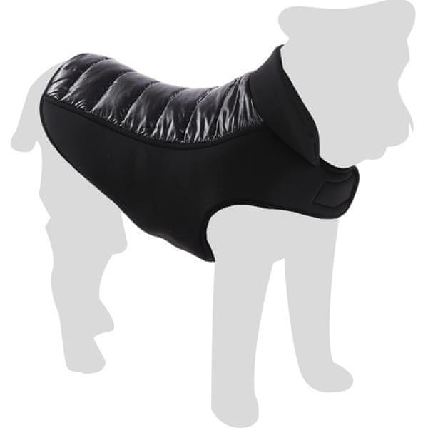 Vodoodporna jakna s pokončnim ovratnikom, Velcro zapenjanjem na trebuhu in pod vratom, luknja za pritrditev povodca na ovratnico.