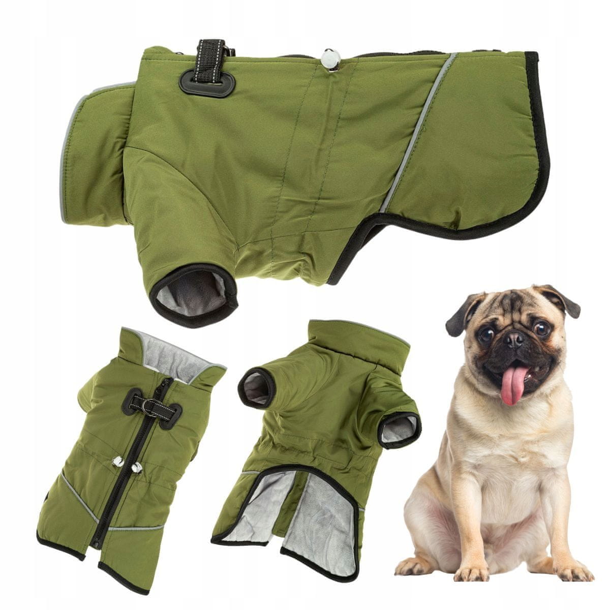 Oblačila za pse za zimo, topla JAKNA z odsevnikom, držalo za povodec XL ⭐ Iščete oblačila za svojega ljubljenčka, ki bodo topla, praktična in modna? ❄️ Močno izolirana oblačila, ki zagotavljajo toplotno udobje ✅ Zapenjanje z zadrgo na hrbtni strani ❄️ Ima pritrditev na povodec z 2 D-obroči (za pse, ki se ne vlečejo) ✅ Lahko se zategne v pasu ❄️ Ščiti pred vetrom in dežjem ✅ Izolirana z ljubko palico ❄️ Popolna za hladne jesenske in zimske dni ✅ Kratki rokavi spredaj ❄️ Ima odsevni vložek in niti na pritrditvi na povodec ☑️ Barva: kaki ☑️ Dolžina hrbta: 40 cm ☑️ Obseg prsnega koša: 45–54 cm ☑️ Obseg vratu: 35–40 cm Kako izmeriti svojega psa?? Pomembne so 3 dimenzije, ki jih vedno navedemo pri vsakem oblačilu. Dimenzije so prikazane na spodnji sliki: 1. Obseg vratu (številka 1 na fotografiji), izmerjen na najširši točki, kot pri ovratniku (pri puloverjih ga ne navedemo vedno – imajo zelo raztegljive puloverje) 2. Obseg prsnega koša (številka 2 na fotografiji), izmerjen na najširši točki 3. Dolžina hrbta (številka 3 na fotografiji), merjena od zatilja do repa. Navedene dimenzije so MAKSIMALNE vrednosti. Ročne meritve – tveganje napake +/- 1 cm ☃️ Izolirana oblačila ☃️ Zapenjajo se z zadrgo ☃️ Imajo kavelj za povodec ☃️ Ovratnico je mogoče zložiti.