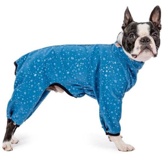 Stilla funkcionalni softshell kombinezon ščiti vašega psa pred mrazom, vetrom in dežjem. Visokokakovostni trislojni softshell ima ne le odlične toplotne in vodoodporne lastnosti, temveč tudi visoko zračnost in elastičnost. Kroj je zasnovan anatomsko, tako da ne omejuje gibanja psa, hkrati pa ščiti vse pomembne dele njegovega telesa. Robovi obleke so zašiti z elastičnim robom, tako da se ne odlepijo, obleka pa se odlično drži na pasjem telesu, ne prepihuje in ne prepušča toplote od spodaj. Za vratom je luknja za pritrditev povodca in všita zanka za obešanje (npr. pri sušenju). Oblačenje je hitro in enostavno: kombinezon se zapenja z zadrgo, všito po celotni dolžini hrbta. Za varnejšo hojo ob zmanjšani vidljivosti je jopič opremljen z odsevnimi elementi. Lastnosti materiala:
