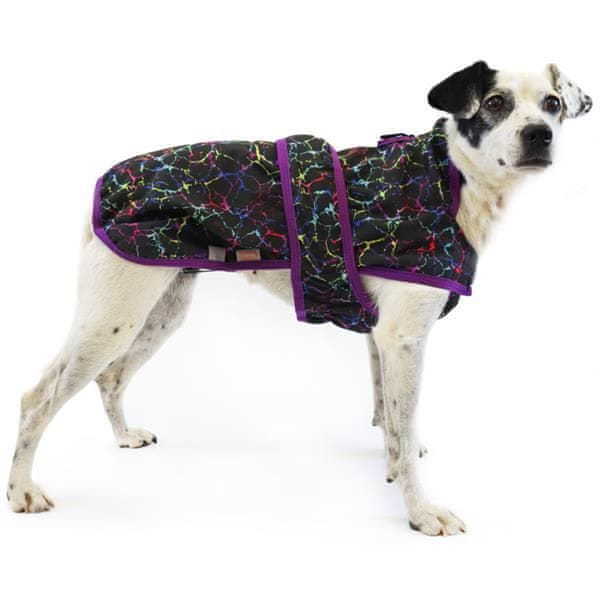 Micelio XL je idealna obleka za bikovske pasme, buldoge, mopse in druge pse s širokim prsnim košem. Vašega štirinožnega prijatelja bo zanesljivo zaščitila pred mrazom, vetrom in dežjem. Obleka je oblikovana tako, da psa ne omejuje pri gibanju, hkrati pa ščiti vse pomembne dele njegovega telesa. Robovi telovnika so obrobljeni, zato se ne odlepijo, temveč odlično držijo na mestu in izpod obleke ne uhaja toplota. Za vratom je luknja za pritrditev povodca na ovratnico in všita zanka za obešanje obleke, npr. pri sušenju. Oblečenje je hitro in enostavno – jopič se zapenja z velkro zaponkami. Lastnosti: