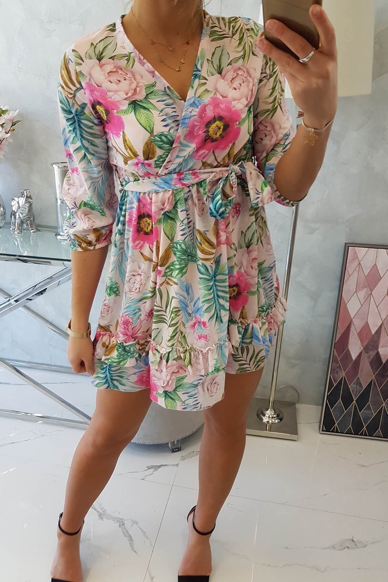 Ženska cvetlična obleka Enydwen pudrasto roza Universal Celoten opis
