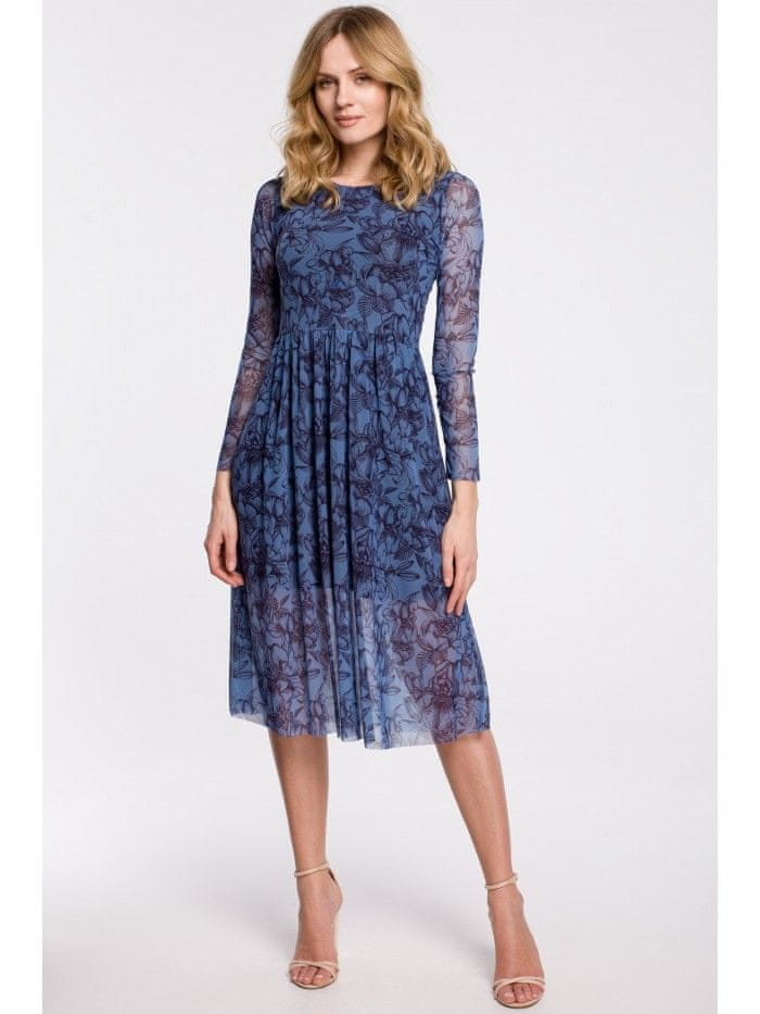 Ženska cvetlična obleka Clakin K064 tmavo modrá XXL Celoten opis